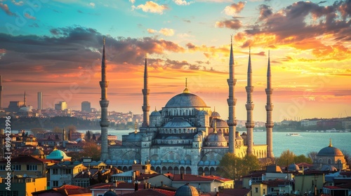 © your inspiration , Obraz premium sunset over the hagia sophia mosque in turkey