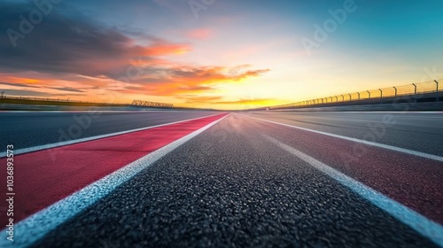 © Pongsiri Payarach, Naklejka premium Sunset over the highway with vibrant colors illuminating the road