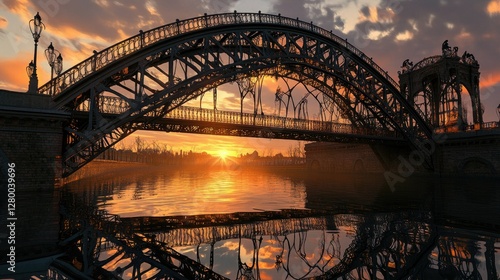 © Magnetix Art, Naklejka premium Sunset Over the Iron Bridge: A Serene Reflection