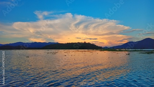 © Phittinan, Obraz premium sunset over the lake