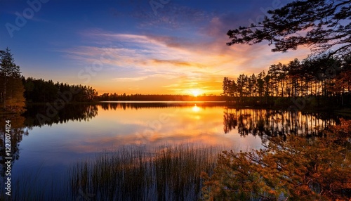 © DELUXSOLUTIONS, Obraz premium sunset over the lake