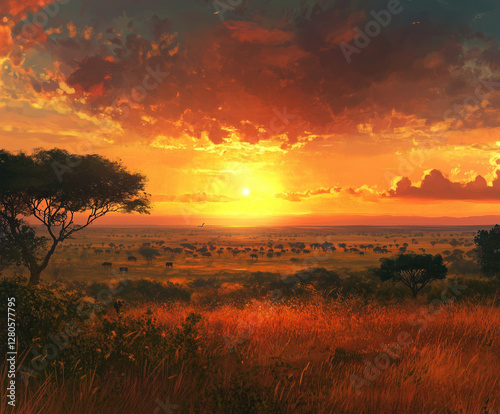© Igor, Obraz premium sunset over the lake