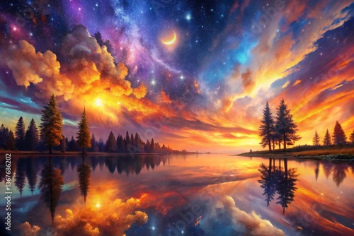 © Garna, Fototapeta premium sunset over the lake