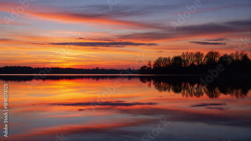 © Charchill, Obraz premium sunset over the lake