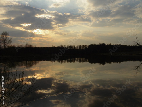 © Олег Белкин, Fototapeta premium sunset over the lake