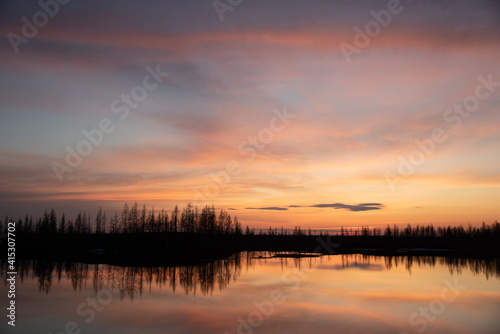 © Andrey Snegirev, Obraz premium sunset over the lake