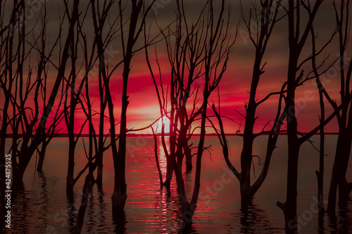© Matias, Fototapeta premium sunset over the lake