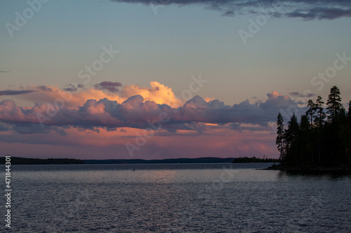 © ALEKSANDR SYTOV, Naklejka premium sunset over the lake
