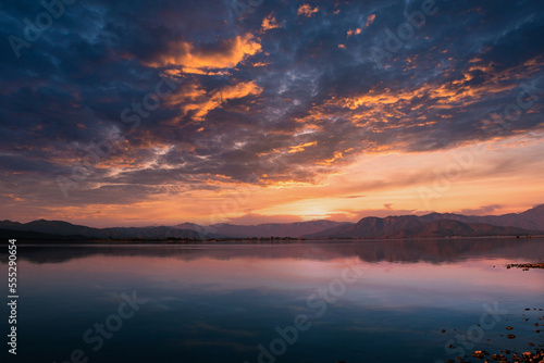 Naklejka premium sunset over the lake