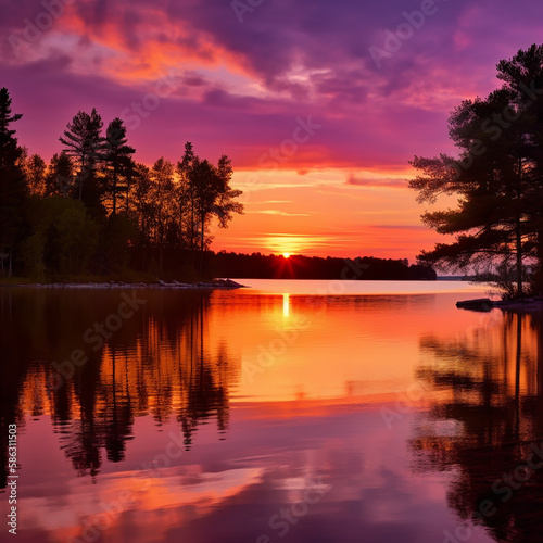 © Andrii Yablonskyi, Fototapeta premium sunset over the lake