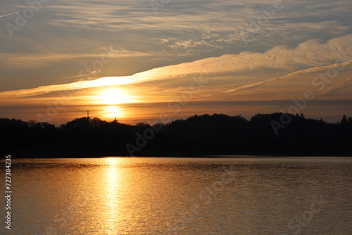 © Jette Rasmussen, Obraz premium sunset over the lake
