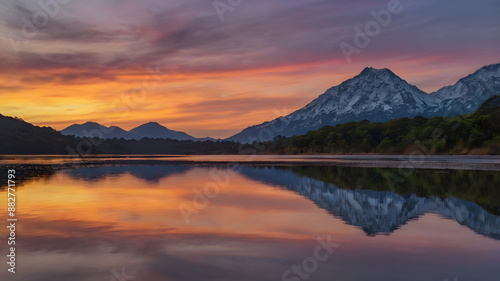 © VitorCosta, Fototapeta premium sunset over the lake, ai generated