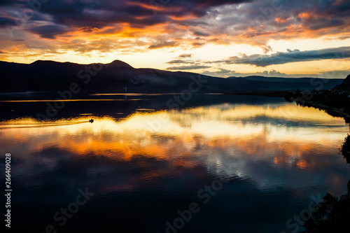 © Michael Fichtner, Fototapeta premium sunset over the lake in pigadakia, greece
