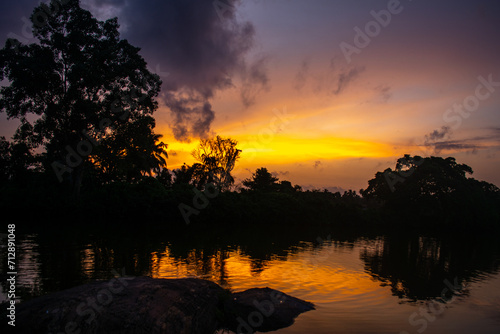 © Walaha, Obraz premium sunset over the lake landscape photo
