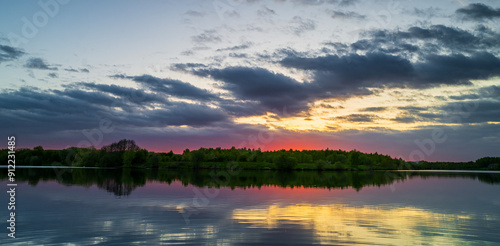 © Robert Sobucki, Fototapeta premium sunset over the lake, Treton