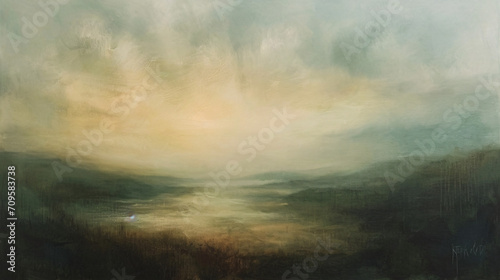 © Argun Stock Photos, Fototapeta premium Sunset over the lake. Watercolor painting. Landscape.