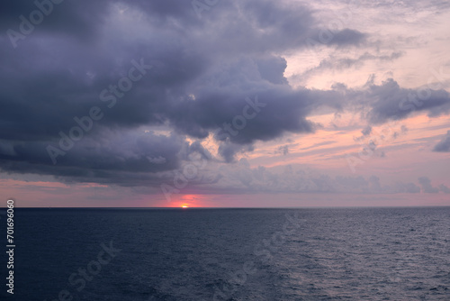 © Raul, Naklejka premium Sunset over the mediterranean sea on a cloudy day