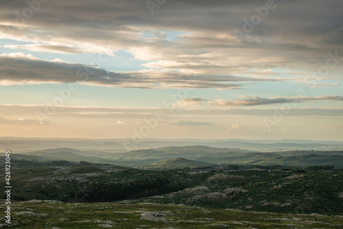 © Regue, Obraz premium sunset over the misty mountains