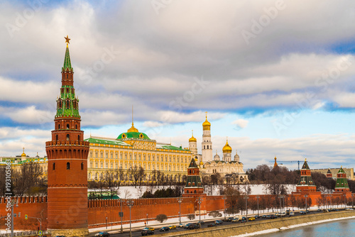 © Gregory, Fototapeta premium Sunset over the Moscow Kremlin and river in Russia