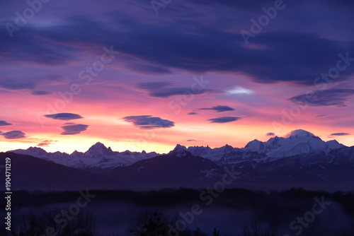 © Laurent, Obraz premium sunset over the mountains