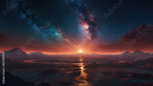 © Ameerhamza, Fototapeta premium sunset over the mountains