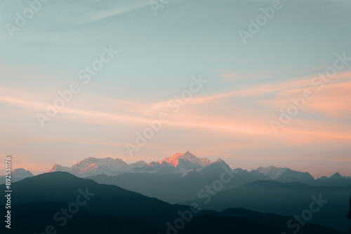 © Subhashis, Fototapeta premium sunset over the mountains