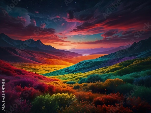 © dave958, Fototapeta premium sunset over the mountains