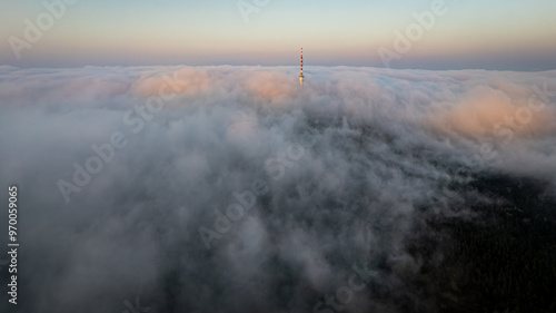 Obraz premium Sunset over the mountains, Jeseníky, Praděd