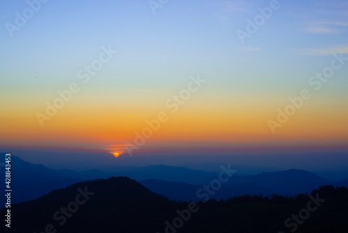 © Nattanon, Fototapeta premium sunset over the mountains with dramatic sky