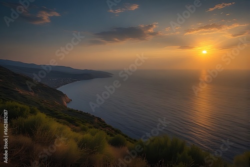 © yopie, Fototapeta premium Sunset over the Ocean from a Hilltop