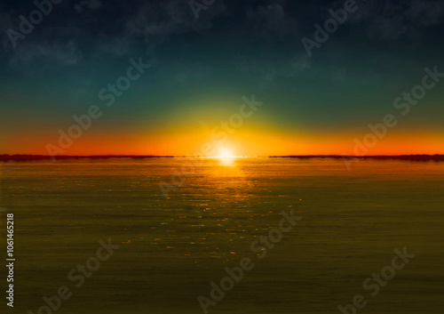 Naklejka premium Sunset Over the Ocean Horizon(海の地平線に沈む夕日)