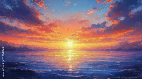 © tiger, Fototapeta premium Sunset Over the Ocean in Impressionism Style