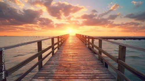 © Randu, Fototapeta premium Sunset over the Ocean Pier