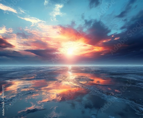 Fototapeta premium sunset over the ocean with clouds and water