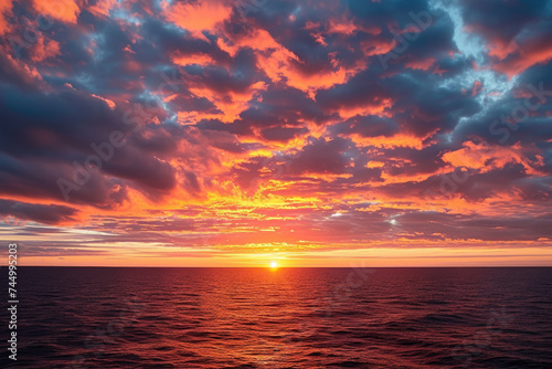 © Formoney, Obraz premium sunset over the ocean, with orange and pink clouds in the sky