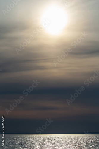 Fototapeta premium Sunset over the ocean with soft clouds under the sun