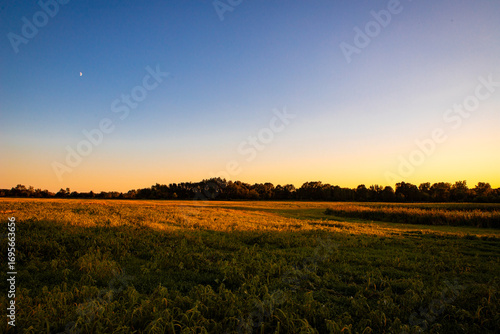 Obraz premium sunset over the open field with completely clear sky