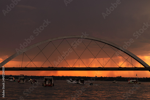 © Carlos Grillo, Naklejka premium Sunset over the Paranoa Lake with rain in the background