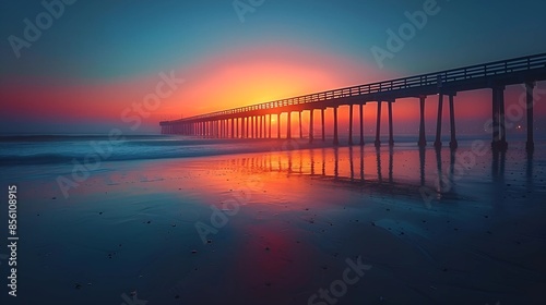 © Ruksanaporn, Obraz premium "Sunset Over the Pier"