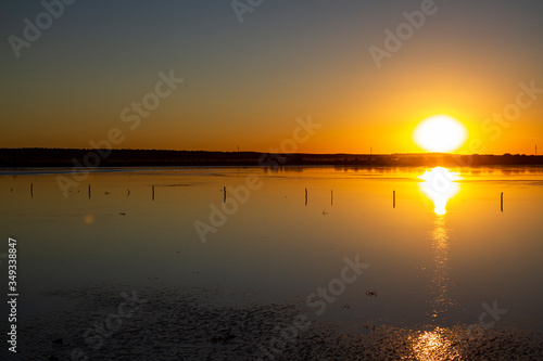 Naklejka premium sunset over the river