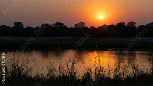 © Laura, Fototapeta premium sunset over the river