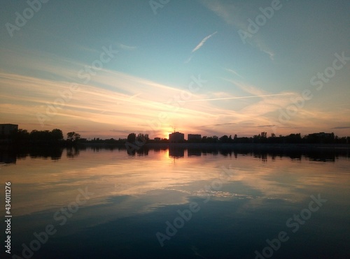 © Юлия Киселева, Obraz premium sunset over the river