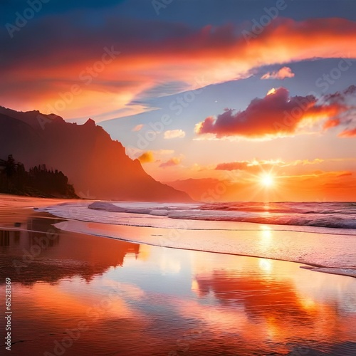 © Muhammad Sanwal, Obraz premium sunset over the river