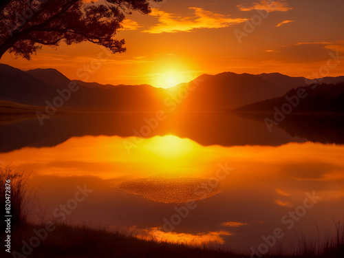 © Rewat, Obraz premium sunset over the river