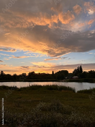 © Виктория Кузьменко, Obraz premium sunset over the river