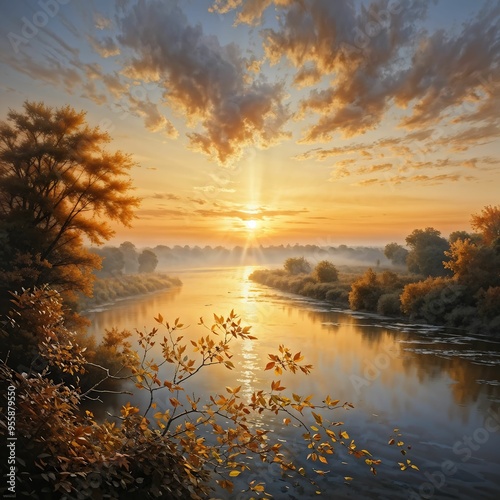 © Vivian, Obraz premium sunset over the river