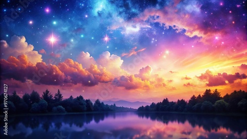 © Евгений Бартенев, Fototapeta premium sunset over the river
