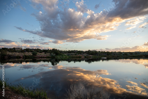© Franz, Fototapeta premium Sunset over the river and fantastic clouds in Utah