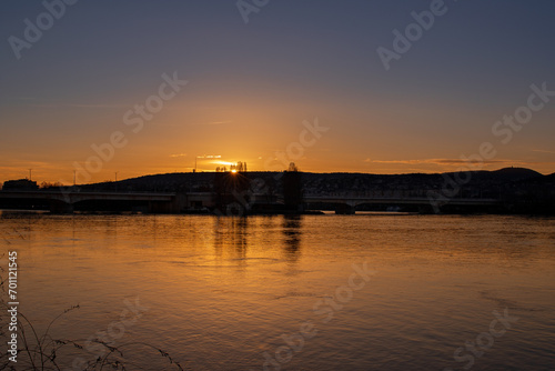 © Maria, Naklejka premium Sunset over the river Danube Hungary