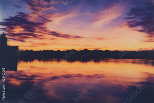 Fototapeta premium sunset over the river. Generative AI